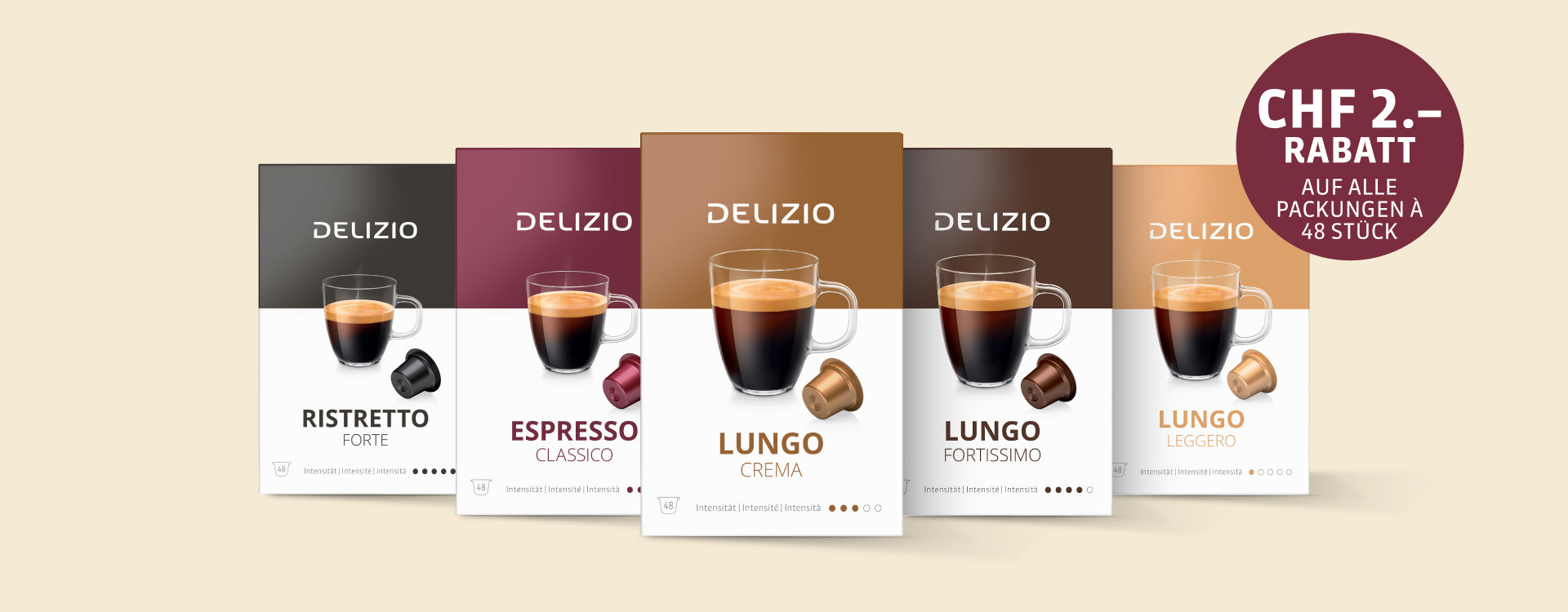 CHF 2.- Rabatt auf alle Packungen à 48 Kapseln