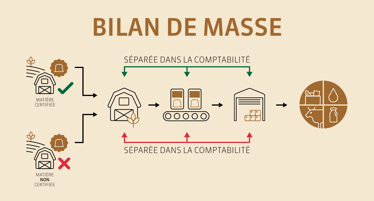 L’approche du bilan de masse a été conçue pour suivre le flux de matières à travers une chaîne de création de valeur complexe. Comme les matières premières biosourcées sont mélangées dans le processus de fabrication, il est souvent impossible de séparer physiquement le contenu biosourcé, tant pour des raisons pratiques qu’économiques. L’approche du bilan de masse permet de suivre la quantité et les caractéristiques de durabilité des matières biosourcées dans la chaîne de création de valeur et de les affecter en se basant sur une comptabilité vérifiable.