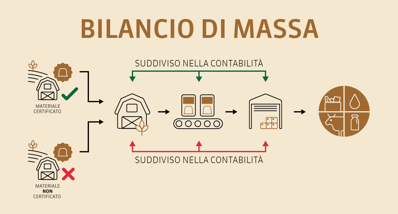 L'approccio del bilancio di massa è stato sviluppato per tracciare il flusso di materiale attraverso una complessa catena del valore aggiunto. Poiché le materie prime bio-based vengono mescolate nel complesso produttivo, la separazione fisica della parte bio-based spesso non è fattibile in termini pratici ed economici. L'approccio del bilancio di massa consente di tracciare la quantità e le proprietà di sostenibilità dei materiali bio-based nella catena del valore aggiunto e di classificarli mediante una contabilità verificabile.