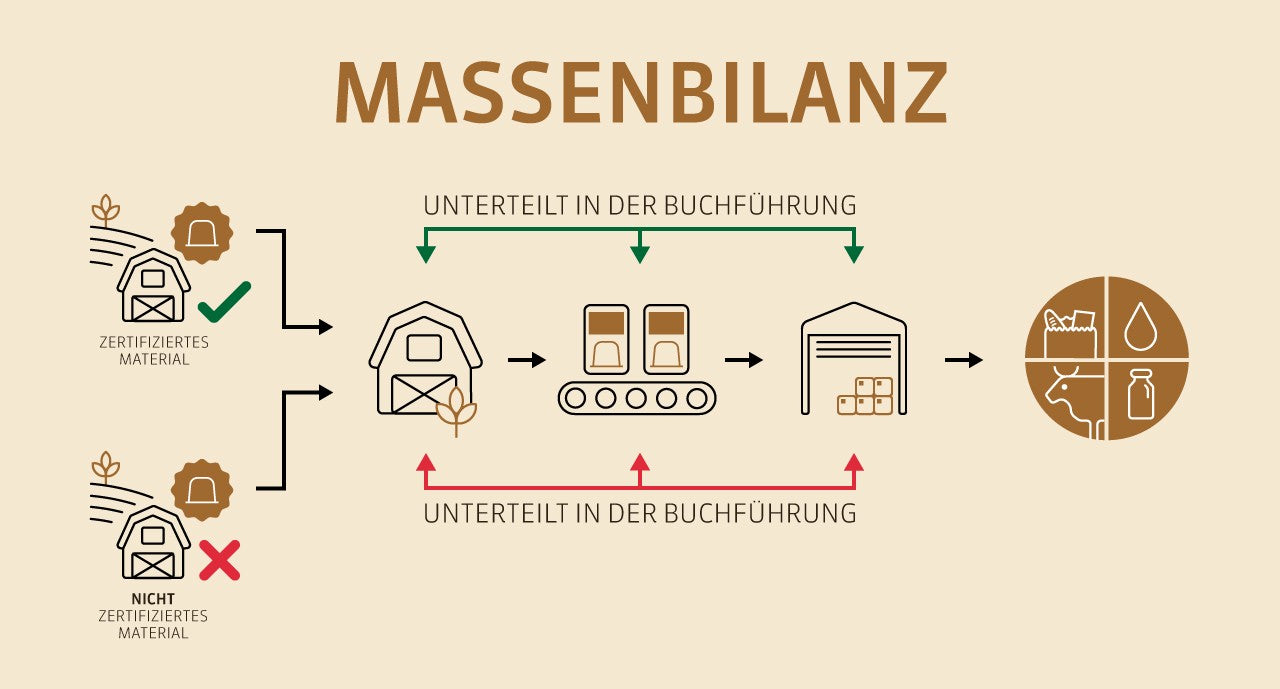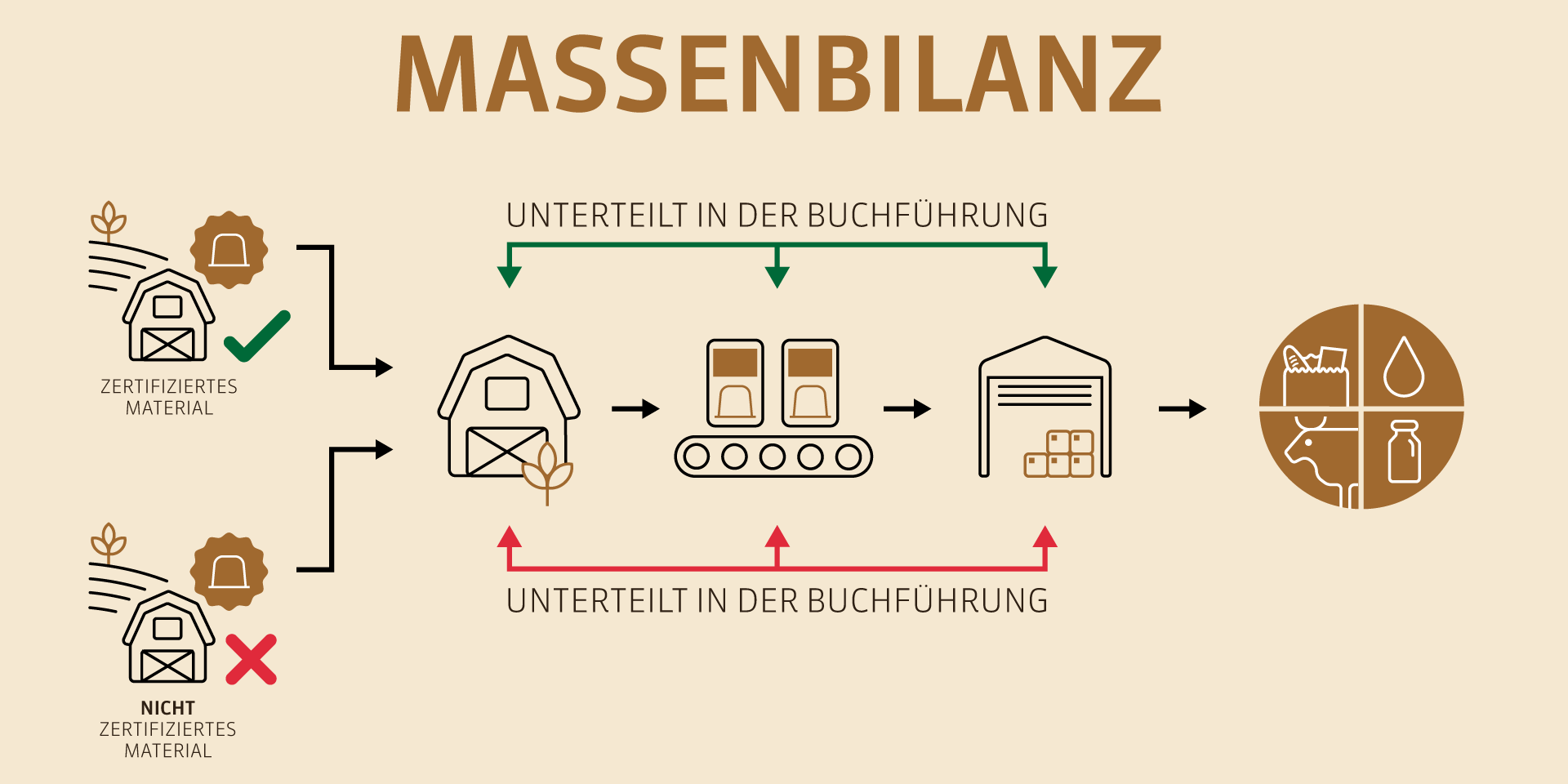 Der Massenbilanzansatz wurde entwickelt, um den Materialfluss über eine komplexe Wertschöpfungskette hinweg zu verfolgen. Da biobasierte Rohstoffe im Produktionskomplex gemischt werden, ist eine physische Trennung des biobasierten Anteils praktisch und wirtschaftlich oft nicht machbar. Der Massenbilanzansatz ermöglicht es, die Menge und die Nachhaltigkeitseigenschaften biobasierter Materialien in der Wertschöpfungskette zu verfolgen und mittels einer überprüfbaren Buchführung zuzuordnen.